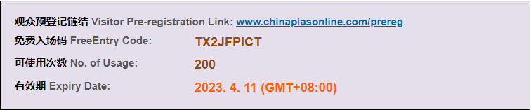 【概要描述】免費(fèi)領(lǐng)取CHINAPLAS2023深圳國(guó)際橡塑展入場(chǎng)碼