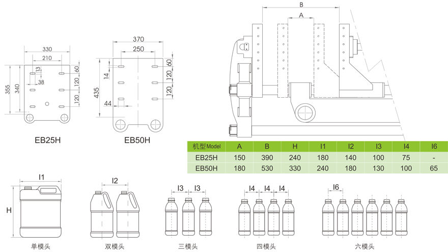 模架尺寸及適應瓶型(mm):