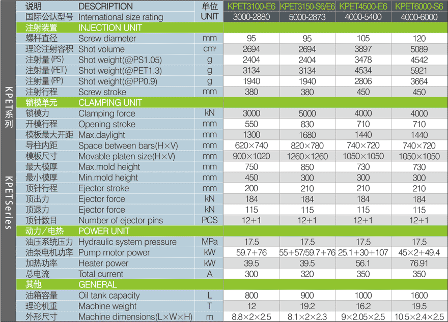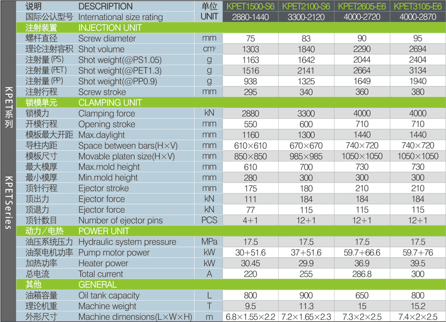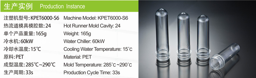 提供PET瓶坯全方位完善而成熟的解決方案,注射量從800-6000g的50多款不同規(guī)格型號(hào)PET瓶坯專用注塑機(jī)。